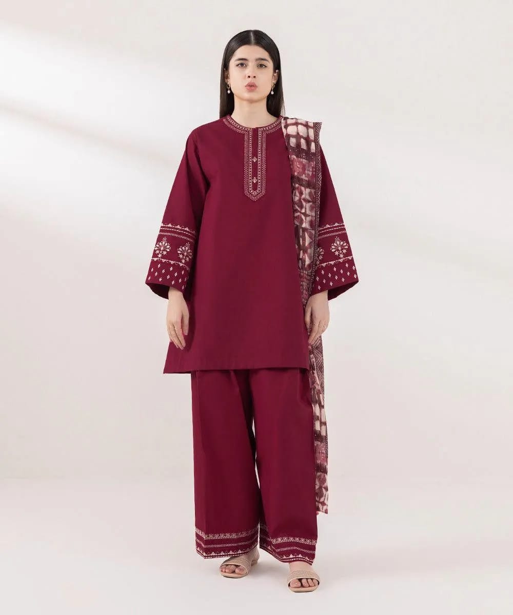 Product Name: 3 Pcs Women's Unstitched Embroidered Suit