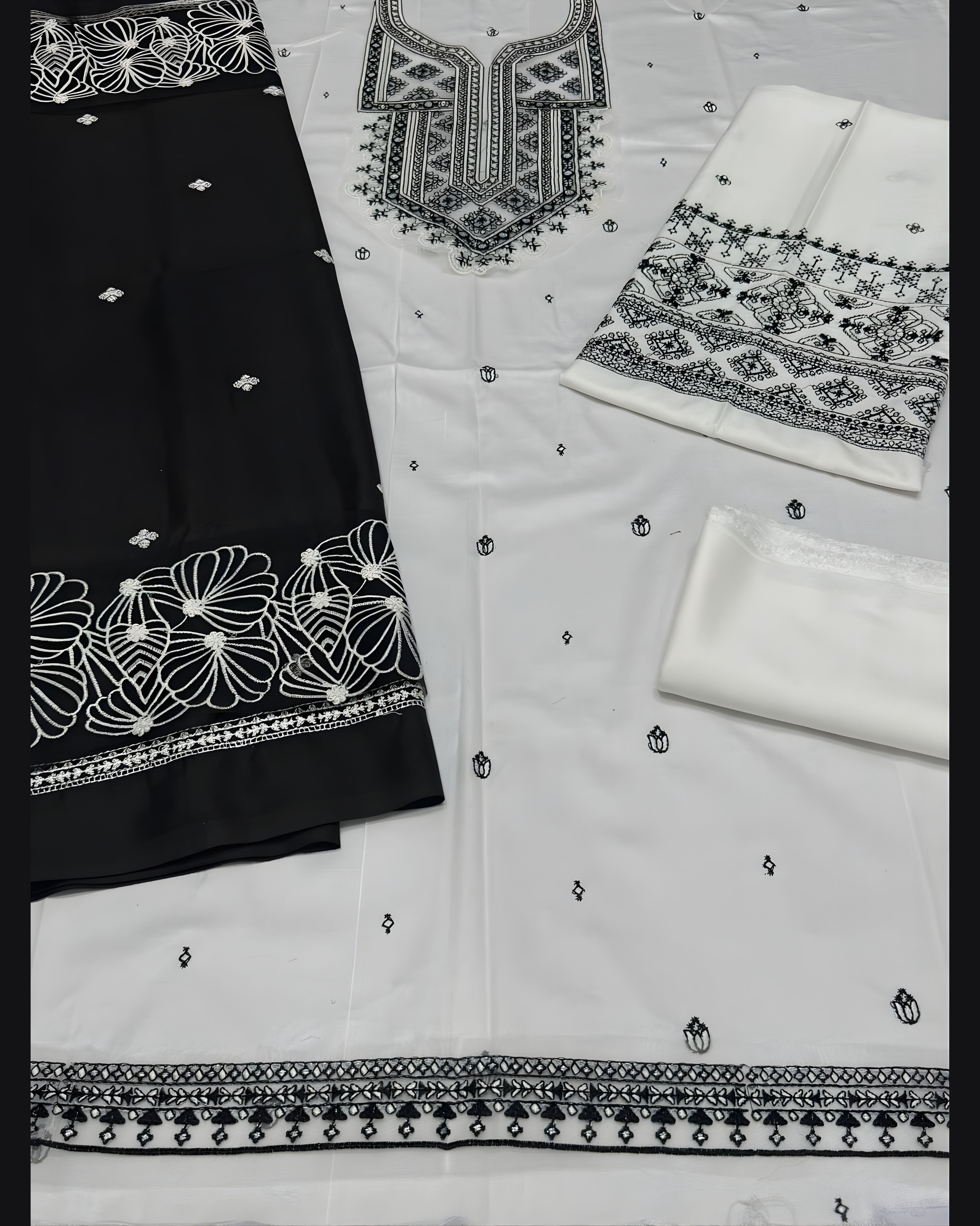 Dhanak Hit Codes Stuff: Best Quality Pure DHANAK neck patch & daman patch Front Full Heavy Embroidery Sleeves Heavy Emb with patch dhanak emb shwal with patch