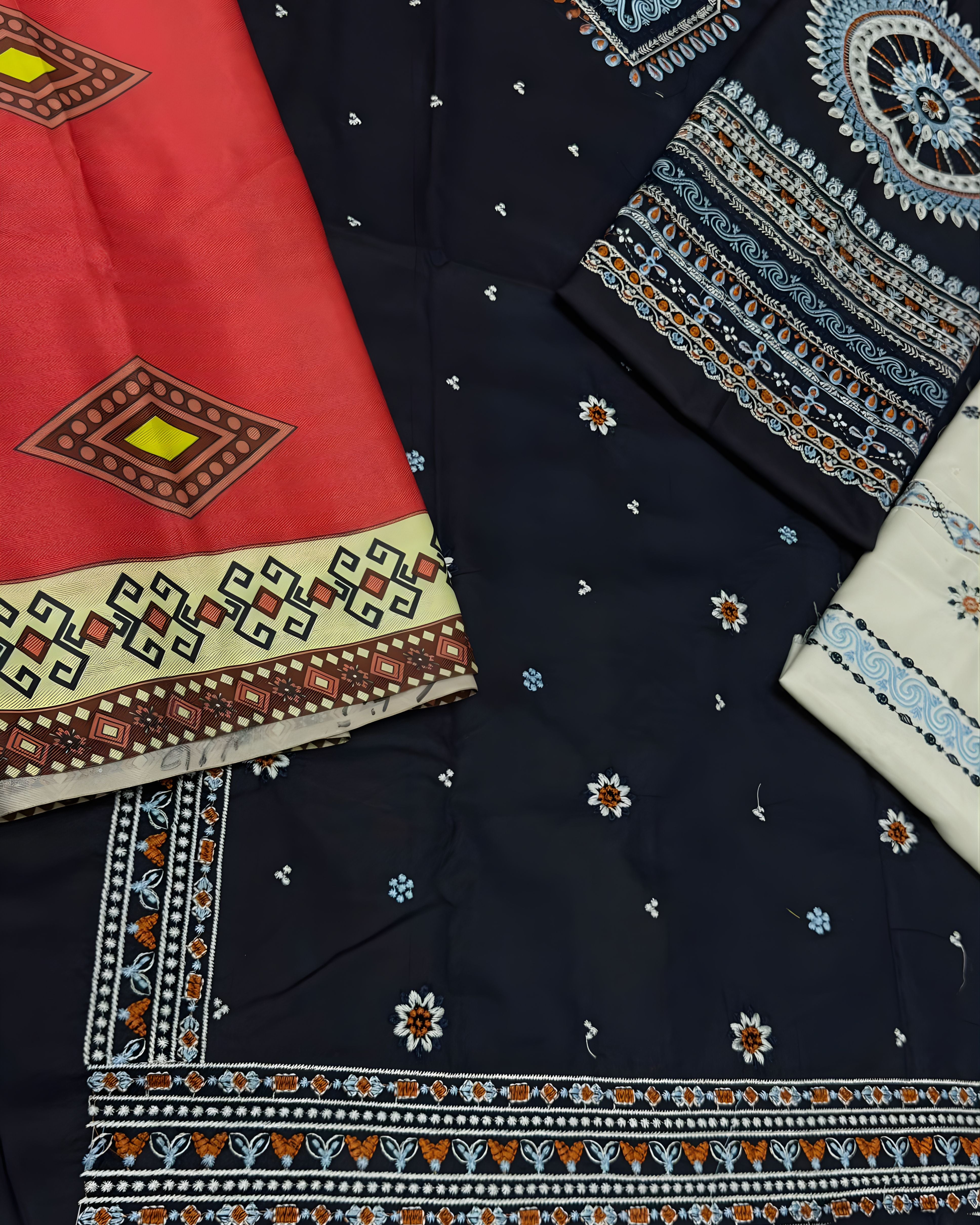 Dhanak Hit Codes Stuff: Best Quality DHANAK Front Full Heavy Embroidered Sleeves Heavy Embroidered Printed Shawl Trouser Embroidered After Wash Guaranteed